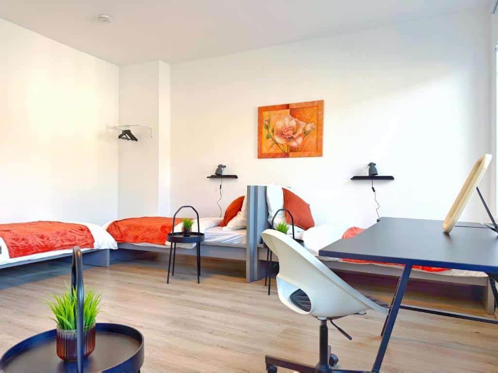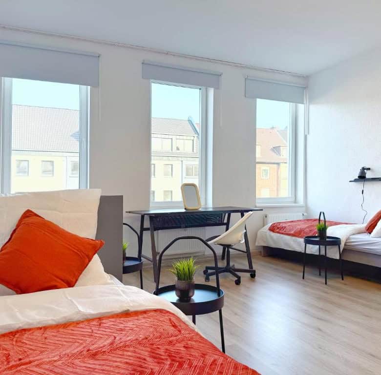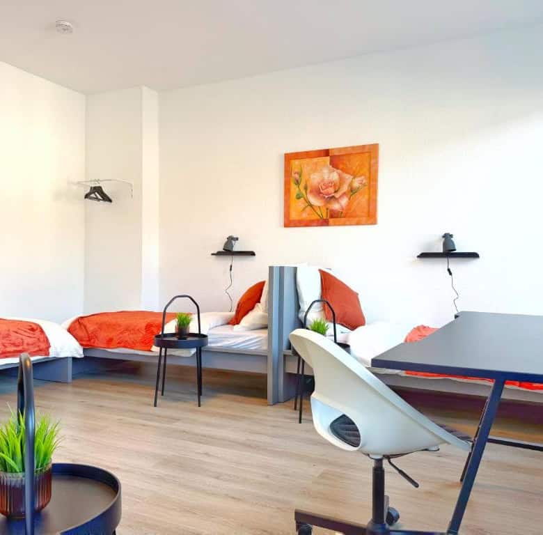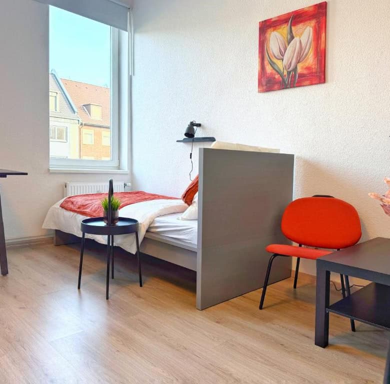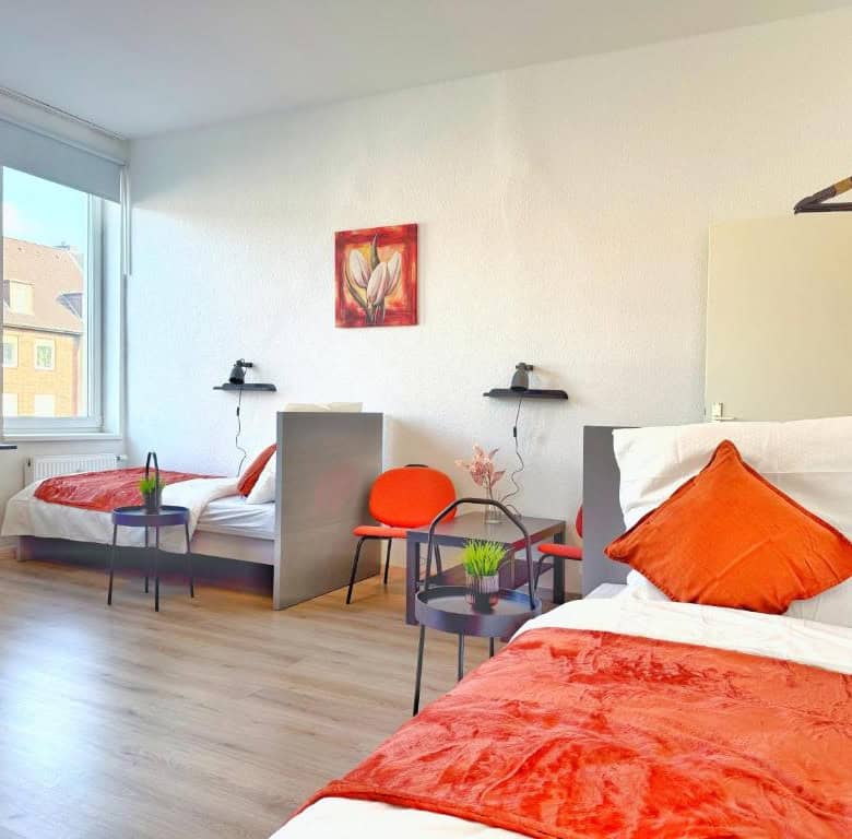 Comfortable Accommodation: Ring-Apartments Orange – 2 OG – Zentrale 1-SZ Wohnung, bis 4 in Gelsenkirchen offers a one-bedroom apartment with a bathroom. The property includes family rooms, ensuring a pleasant stay for all guests. Essential Facilities: Guests benefit from free WiFi and a fully equipped kitchen. The apartment features a comfortable bedroom and a modern bathroom, providing all necessary amenities for a comfortable stay. Local Attractions: Zeche Zollverein, Red Dot Design Museum, Veltins Arena, Ruhr Museum, and Stoppenberg Collegiate Church are located 6 km away. Other attractions include Cranger Kirmes and GOP Variety Theatre Essen, each 8 km from the property. Düsseldorf Airport is 35 km distant.