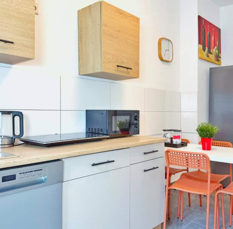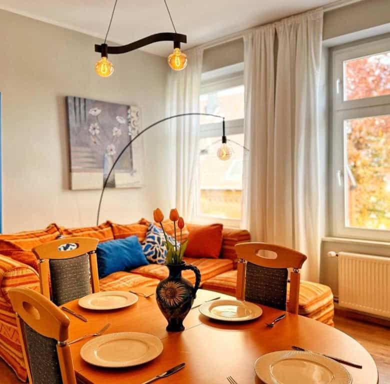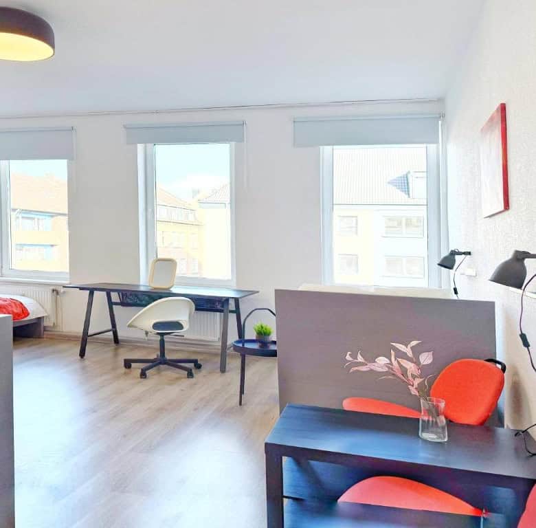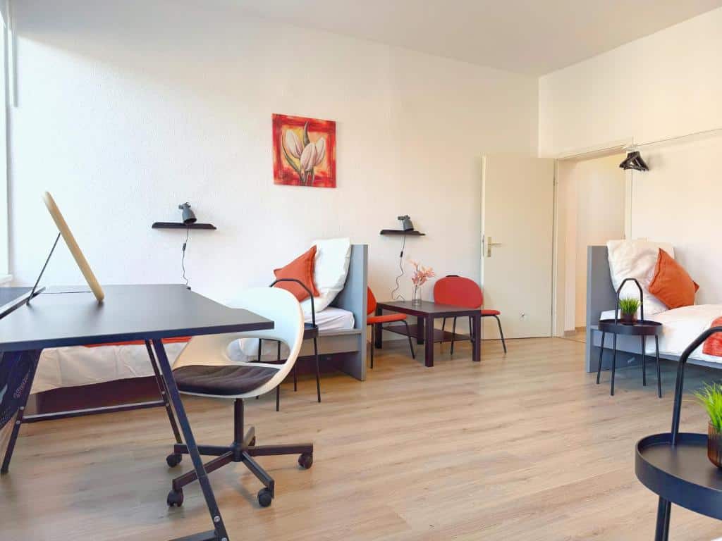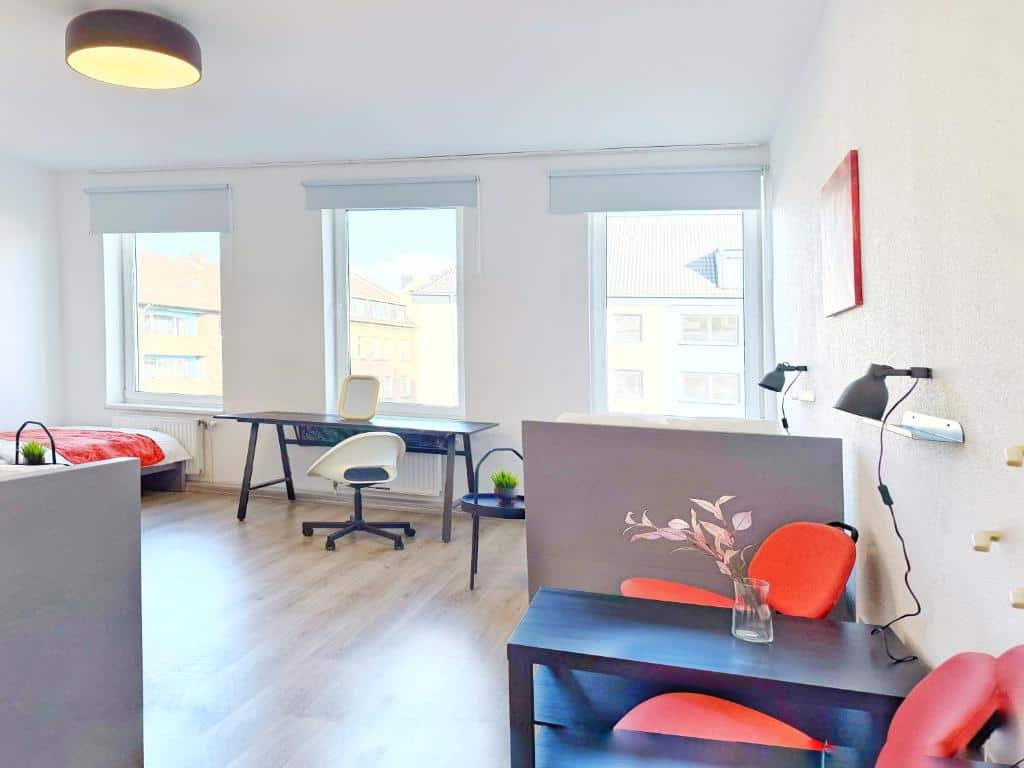 Comfortable Accommodation: Ring-Apartments Orange – 2 OG – Zentrale 1-SZ Wohnung, bis 4 in Gelsenkirchen offers a one-bedroom apartment with a bathroom. The property includes family rooms, ensuring a pleasant stay for all guests. Essential Facilities: Guests benefit from free WiFi and a fully equipped kitchen. The apartment features a comfortable bedroom and a modern bathroom, providing all necessary amenities for a comfortable stay. Local Attractions: Zeche Zollverein, Red Dot Design Museum, Veltins Arena, Ruhr Museum, and Stoppenberg Collegiate Church are located 6 km away. Other attractions include Cranger Kirmes and GOP Variety Theatre Essen, each 8 km from the property. Düsseldorf Airport is 35 km distant.