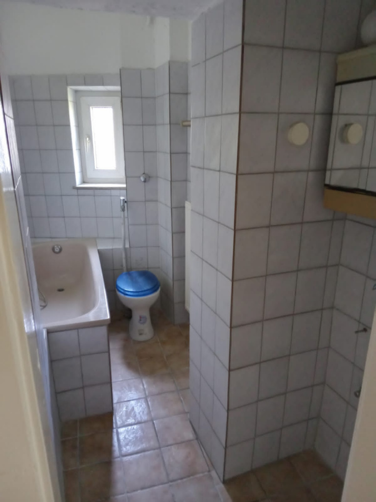 Die Wohnfläche ist durchdacht aufgeteilt und umfasst ein helles, gut geschnittenes Wohnzimmer, ein ruhiges Schlafzimmer, eine separate Küche sowie ein Badezimmer mit Dusche. Alle Räume sind zweckmäßig angeordnet und lassen sich individuell gestalten. Zwar verfügt die Wohnung über keinen Balkon, dafür steht ein zugeordneter Kellerraum zur Verfügung, der zusätzlichen Stauraum bietet. Das Gemeinschaftseigentum des Hauses befindet sich in einem ordentlichen Zustand und trägt zu einem gepflegten Gesamteindruck bei.