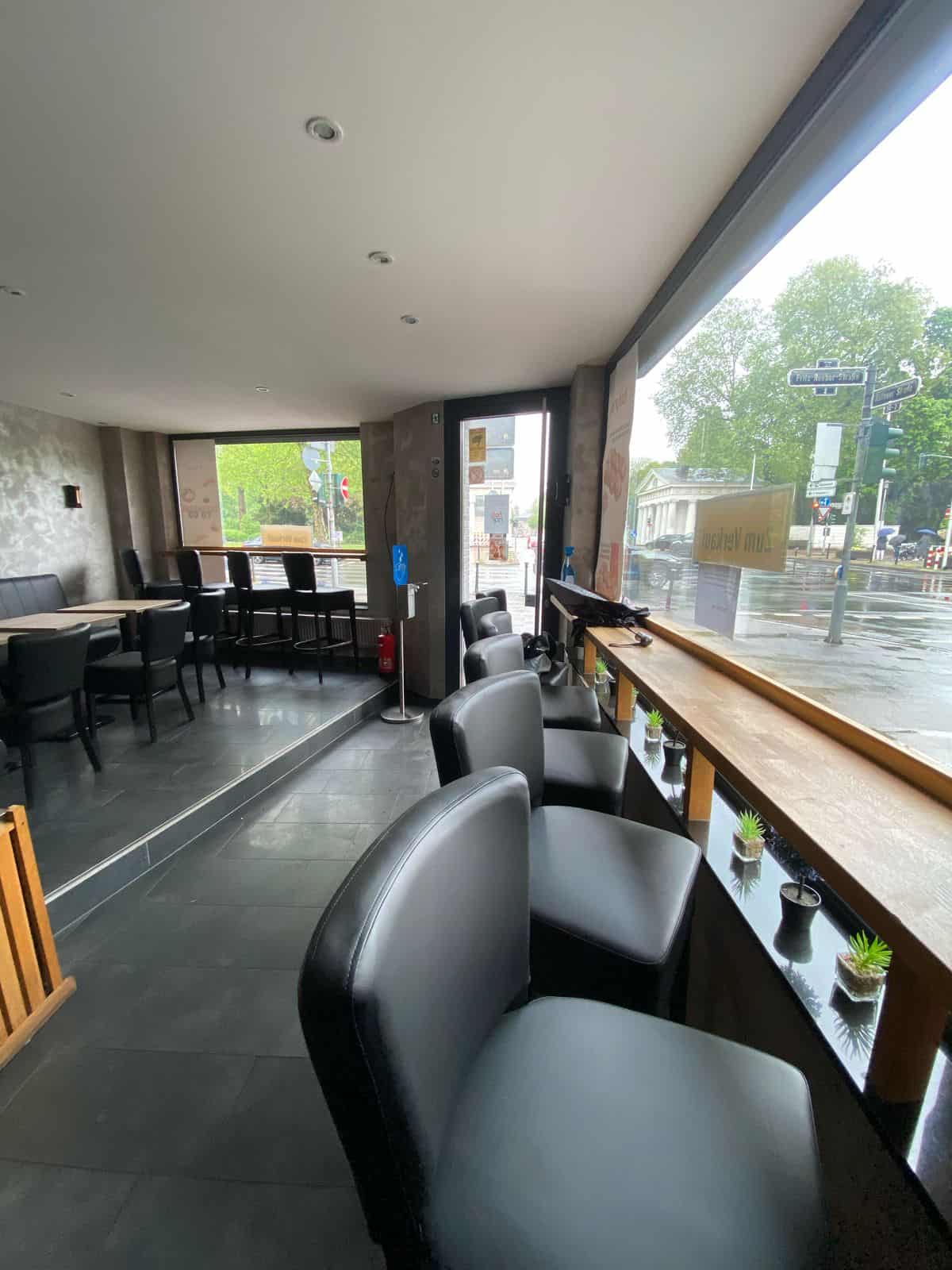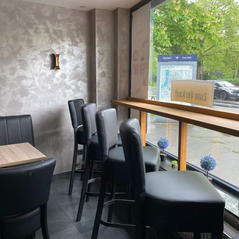 Der lichtdurchflutete Gastraum überzeugt durch großzügige Fensterflächen, ein stilvolles Interior und eine mit viel Liebe zum Detail ausgewählte Einrichtung. Die Atmosphäre ist einladend und elegant – ideal geeignet für ein Tagescafé, ein Brunchkonzept, eine gehobene Kaffeebar oder ein vergleichbares Gastronomiekonzept.